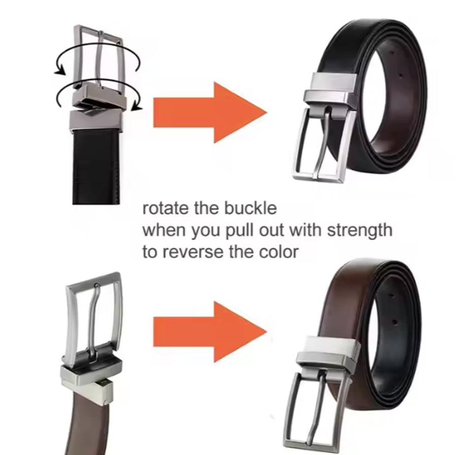 Made from high-quality Premium Belt, this belt is not only stylish but also durable, ensuring long-lasting performance. The rotating buckle allows for easy switching between colors, giving you two belts in one sleek design.
