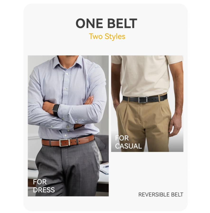 This belt is perfect for the modern man who values practicality without compromising style. Whether you're dressing up for a meeting or heading out for the weekend, this reversible belt keeps your look sharp and coordinated.